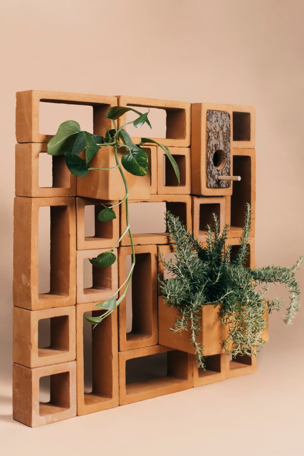 Carlos Jiménez y el Damián López del estudio LEBLUME han diseñado este conjunto de piezas modulares de barro cocido. Cada modelo se puede configurar y combinar de diferentes formas para adaptarse a cada espacio y cada proyecto. Todas las piezas en el catálogo de celosías están inscritas en una retícula de 12 centímetros: esto no solo garantiza la compatibilidad entre todos los diseños de la colección, sino que facilita el mantenimiento de las instalaciones, ya que cualquier módulo puede extraerse y repararse o cambiarse por otro diseño sin comprometer la integridad de la celosía. Además de las piezas que componen estas pantallas de terracota, hemos incorporado a la colección dos accesorios bioclimáticos que cumplen estos mismos requisitos de compatibilidad: maceteros y casas para pájaros.