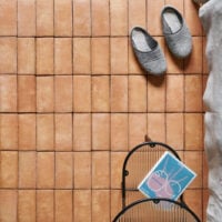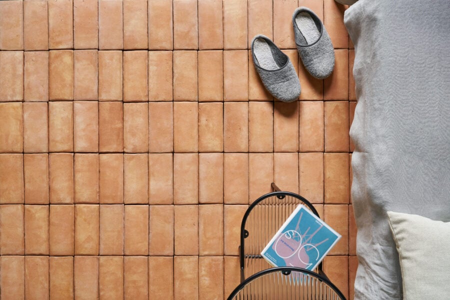 Un suelo y friso de ladrillos de barro cocido para Doble Uve, obrador artesano en Madrid