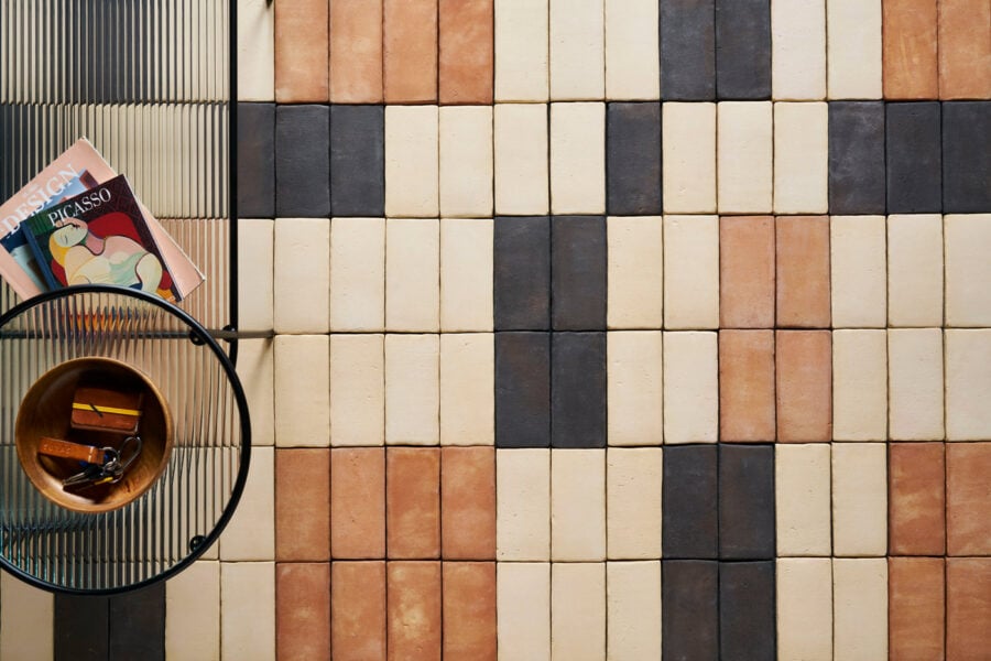 Este entorno se conoce como “Los Coloraos” y sus tonos salmón y ocres se reflejan en este conjunto de baldosas.