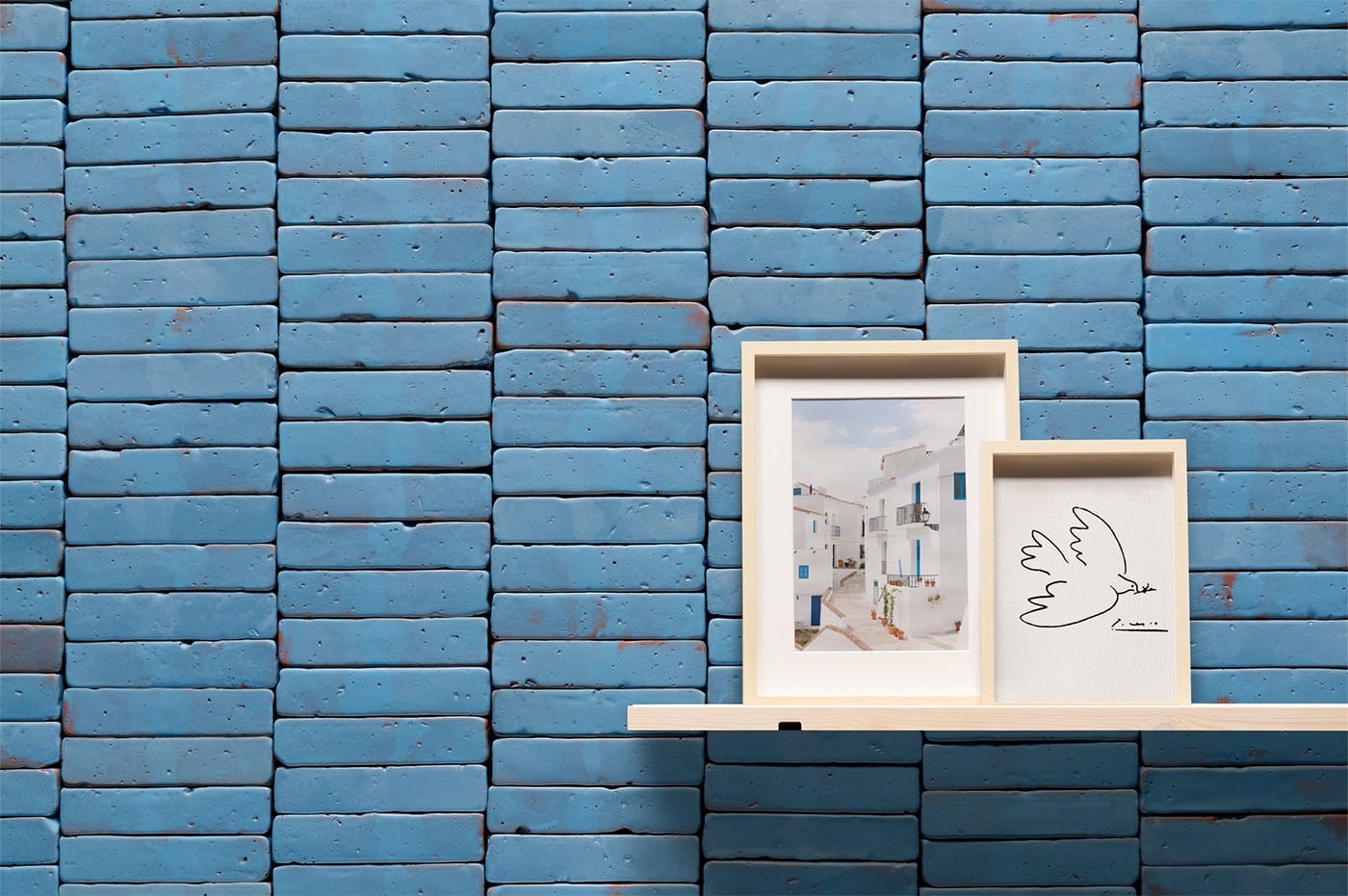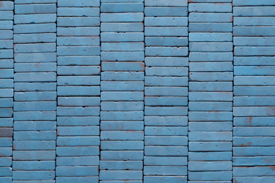 Conjunto de tonos celestes brillantes con alta destonificación y ligeras aguas color tierra. Nuestra textura Antique intensifica esas microvariaciones y aporta un aspecto envejecido y elegante la superficie de los azulejos.