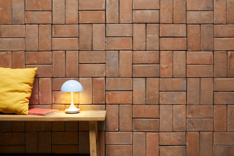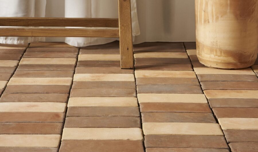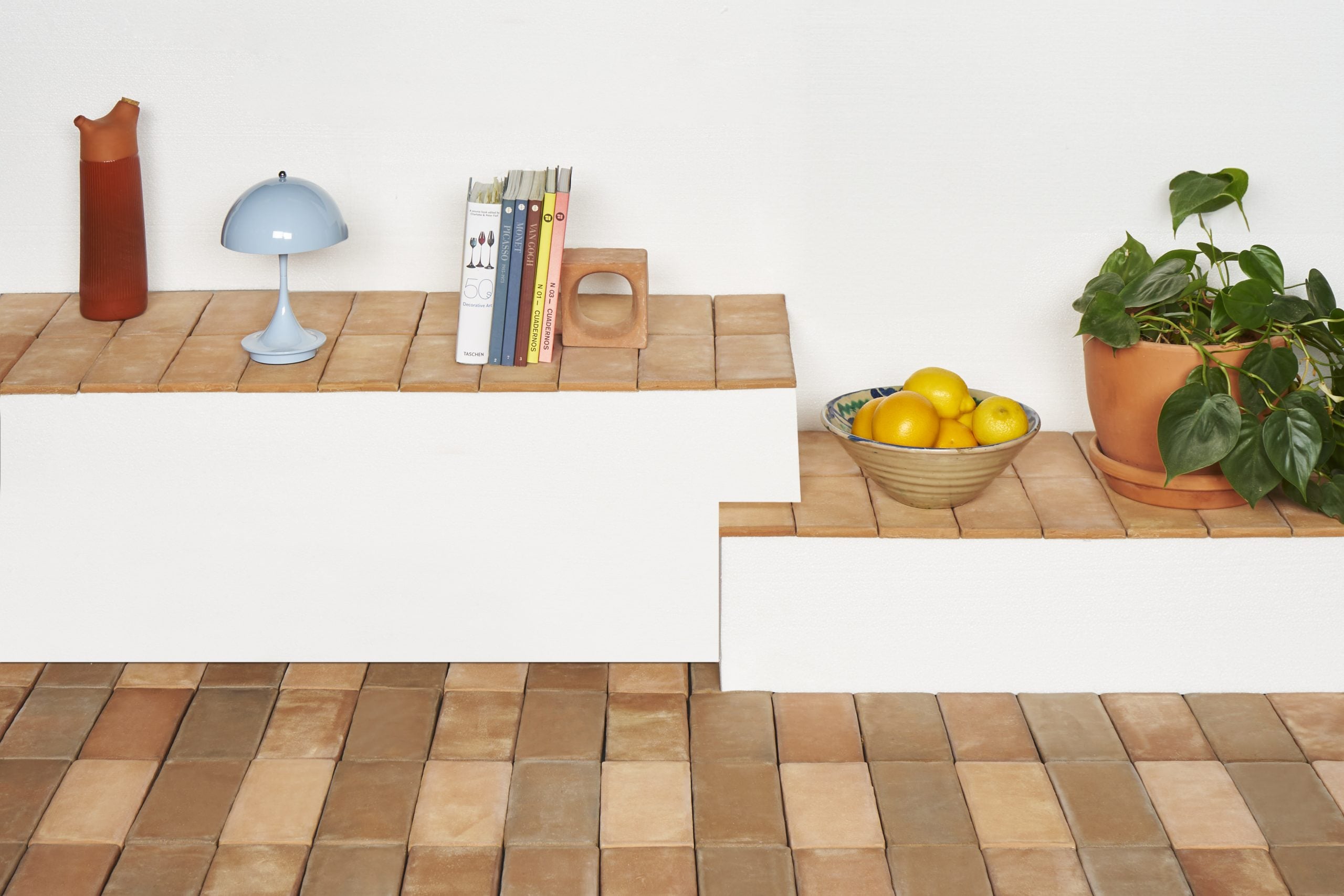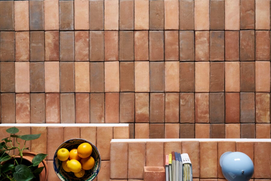 Un suelo y friso de ladrillos de barro cocido para Doble Uve, obrador artesano en Madrid