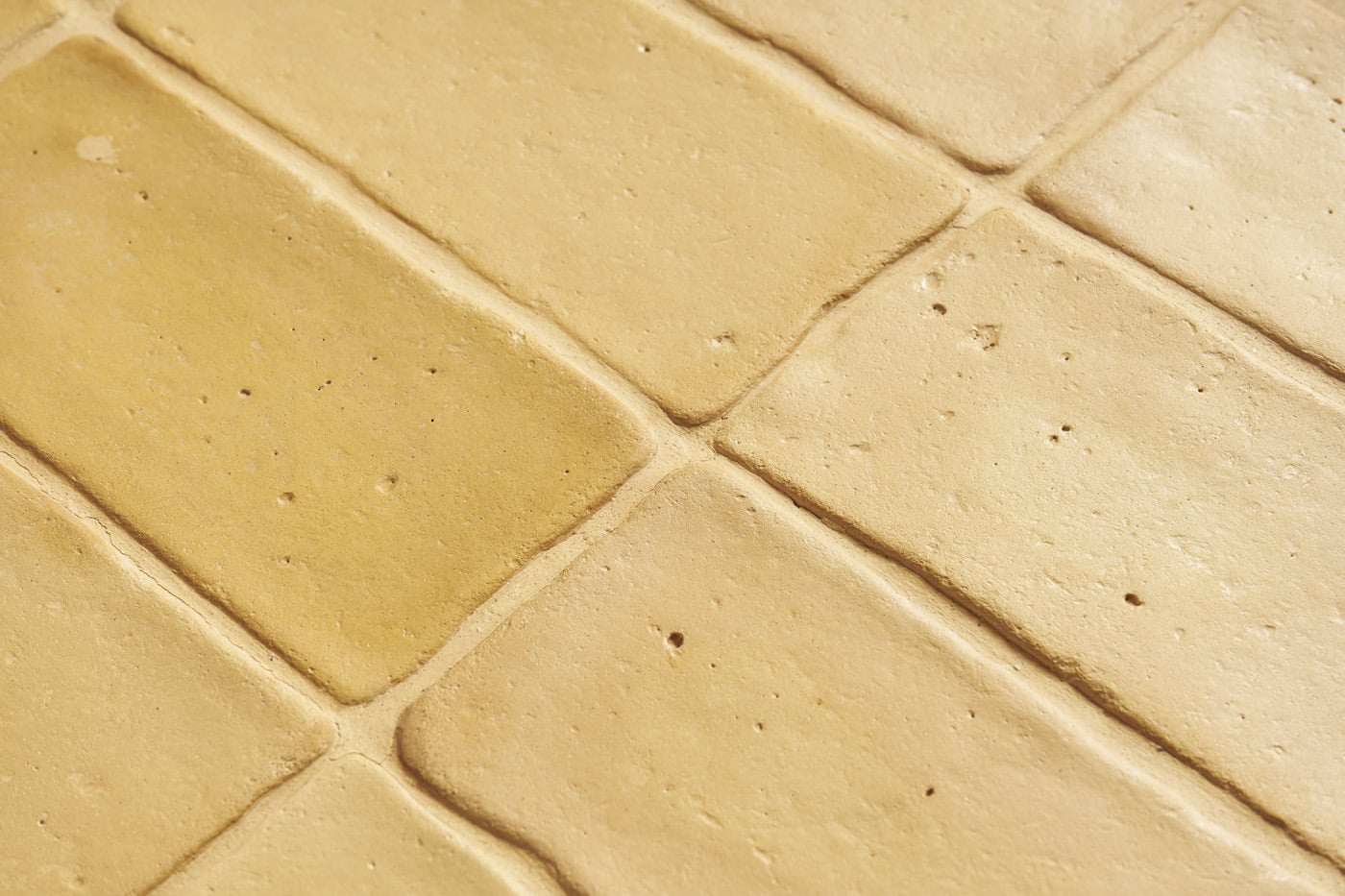 La tonalidad paja de baldosas de barro presenta una base principal amarilla-pajiza con una ligera destonificación, que tiende al anaranjado y hacia matices más blancos. Estas pequeñas variaciones se pueden presentar total o parcialmente en la superficie de las piezas.