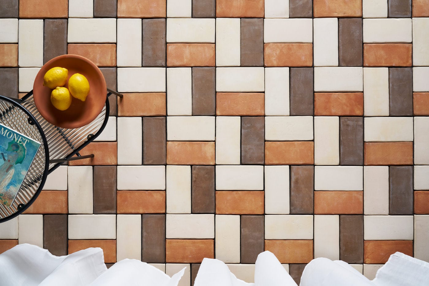 Un suelo y friso de ladrillos de barro cocido para Doble Uve, obrador artesano en Madrid