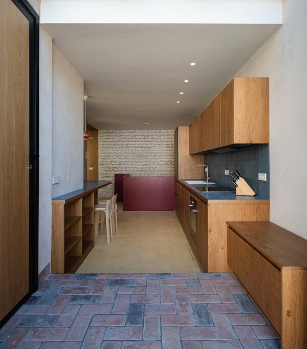 Floors and walls of marble, terracotta or stone are very common in the buildings that best withstand the extreme conditions of the city. They are usually light-colored materials, which gives this project a unique identity. The decision to put a dark terracotta floor throughout the entire floor of the house will help not only to maintain ideal humidity and temperature levels, but also to give a very special feeling to the space (not to mention the aesthetic possibilities of a dark terracotta floor, which are practically endless).