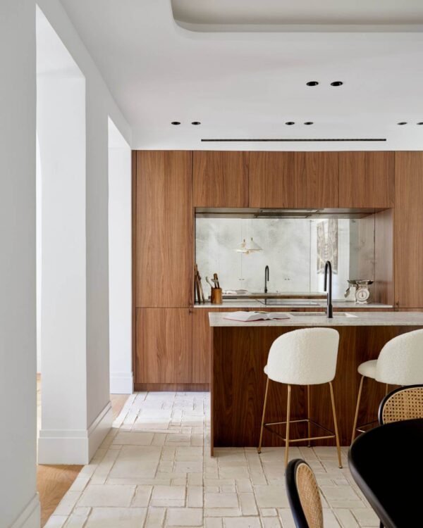 The architecture and interior design of T Residence is the work of Raúl Martínez Padilla, who has focused on the interior-exterior connection of the space. And the result has been a resounding success, as this has been one of the project’s greatest achievements. To achieve this, he took into account the location of the apartment, in one of the most distinctive neighborhoods in our country. Its identity is reflected in details that evoke traditional elements, such as the oak wood paneling in the kitchen and the rattan used in the furniture.