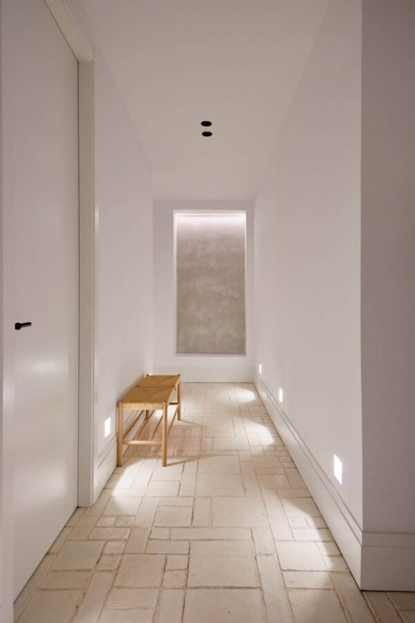 But if there is one feature that makes this space unique and connected to tradition, it is the flooring. This project uses the Mondrian set from todobarro in an antique white finish, which covers the floors of the hallways and the kitchen-dining room of the home.