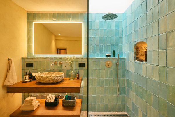 From the blue tones used for the bathroom to the warmth of traditional fired clay tiles for the floor, this projects solves the cladding of its walls and floors with the diversity of our artisanal ceramic tiles.
