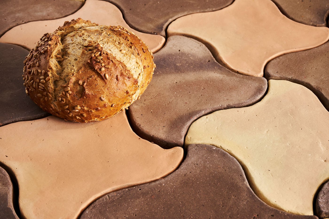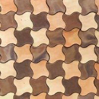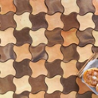 A combination of tiles which draws our mind to the figures and shapes created by a kaleidoscope. The organic appearance serves to accentuate and highlight the color variations in a particularly attractive way.