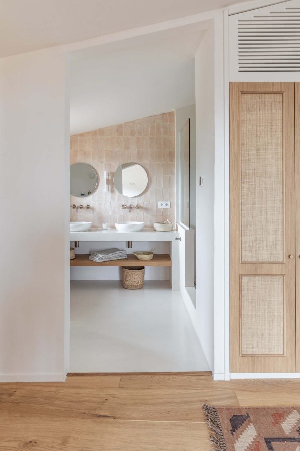Los paisajes naturales aledaños son el germen del interiorismo de esta casa, donde los tonos tierra y pasteles suaves son protagonistas. Maderas de viga a la vista, paredes de piedra y muebles antiguos son claves para preservar la personalidad de esta casa, que a su vez integra las comodidades propias de nuestro tiempo. Los suelos de microcemento y madera aportan unidad dando como resultado una mezcla armoniosa de autenticidad rústica y estilo contemporáneo.