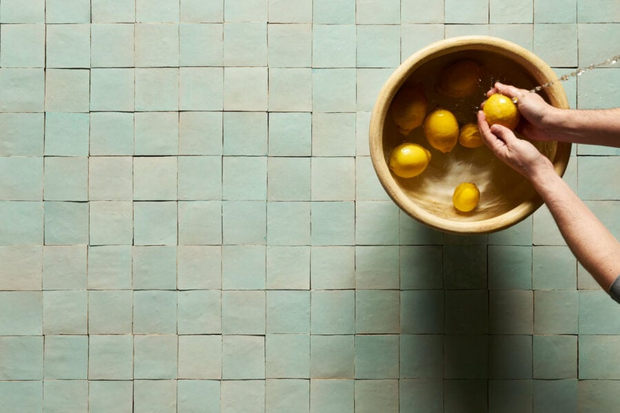 Un suelo y friso de ladrillos de barro cocido para Doble Uve, obrador artesano en Madrid