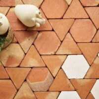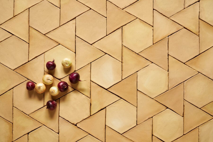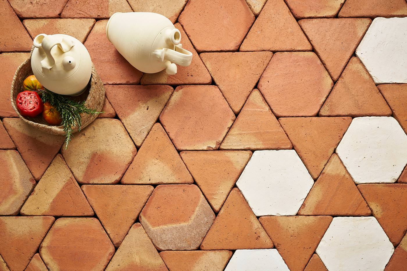 Girasol 30 se compone de dos formatos de baldosas de barro cocido: un Hexágono 30 y un Triángulo 30 equilátero que forman una teselación de hexagrama regular.