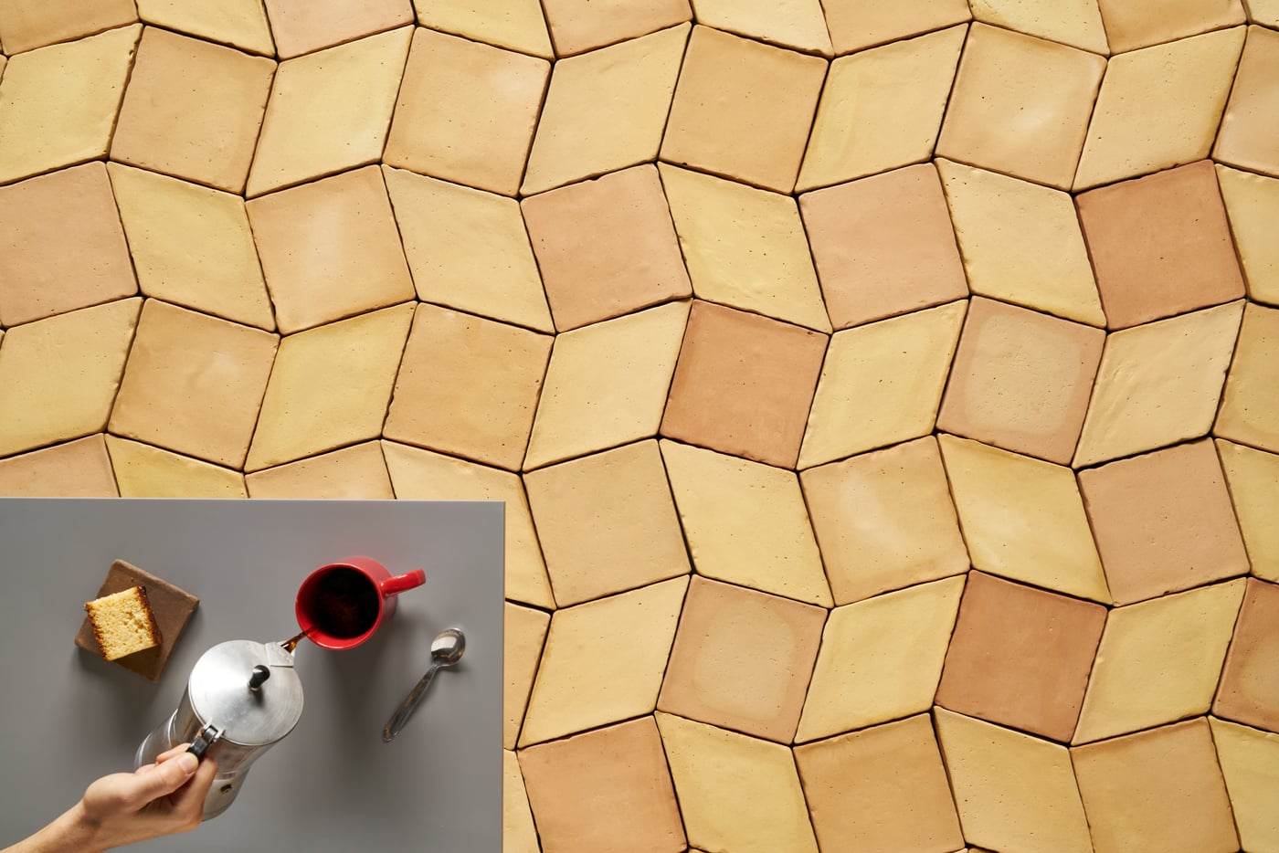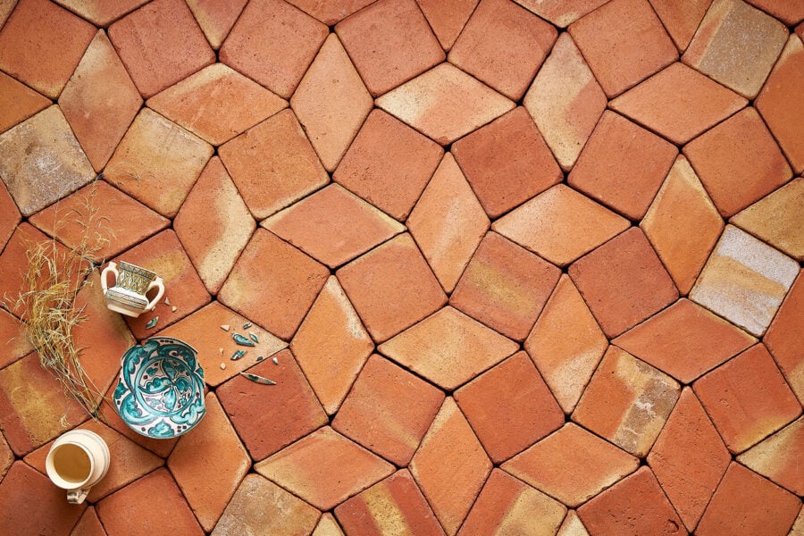 Prometheus Iso 20 se compone de dos formatos de baldosas de barro: un Cuadrado 20 y un Rombo Iso 20 en proporciones 1 a 1. Al no tener ninguna junta continua admite muy bien los proyectos de geometría irregular.