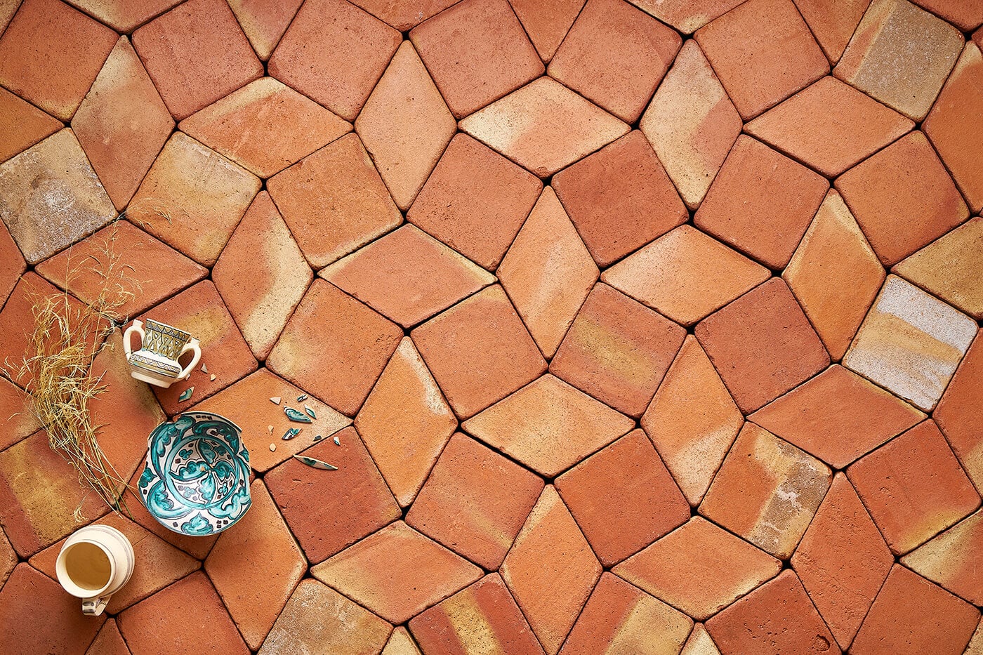 A diferencia del producto industrial, tanto nuestra producción como nuestro sistema de cocción artesanal hacen que cada baldosa sea única, variando su color con hermosas descodificaciones.