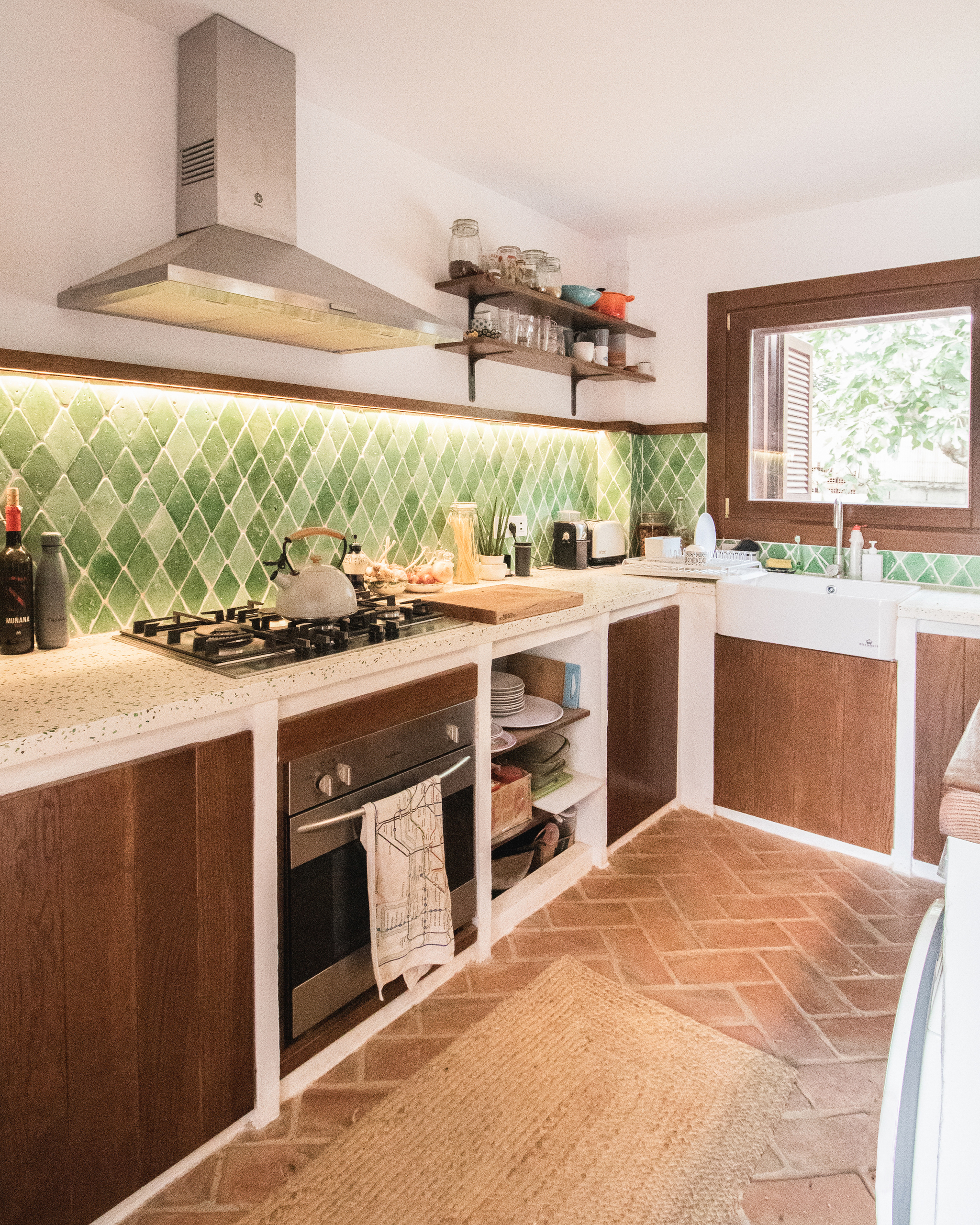 Un suelo y friso de ladrillos de barro cocido para Doble Uve, obrador artesano en Madrid