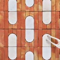 La colección Vélez es un trabajo realizado en colaboración con el diseño del estudio LEBLUME. En esta colección de teselaciones con baldosas de barro cocido, las formas geométricas de la arquitectura tradicional actualizan su lenguaje a un contexto moderno, creando patrones sorprendentes a través de las múltiples combinaciones de sus piezas.